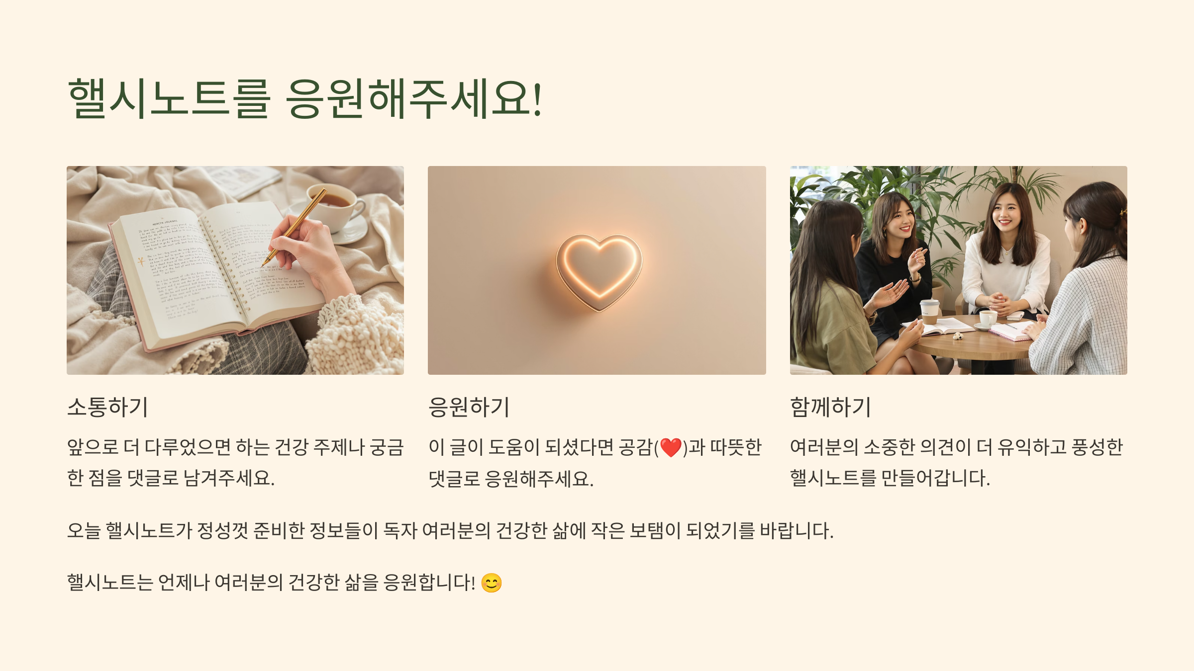 이 글이 도움이 되셨다면 공감(❤️)과 따뜻한 댓글로 응원 부탁드리며, 앞으로 핼시노트에서 더 다루었으면 하는 건강 주제나 궁금한 점이 있으시다면 언제든지 댓글로 남겨주세요!
