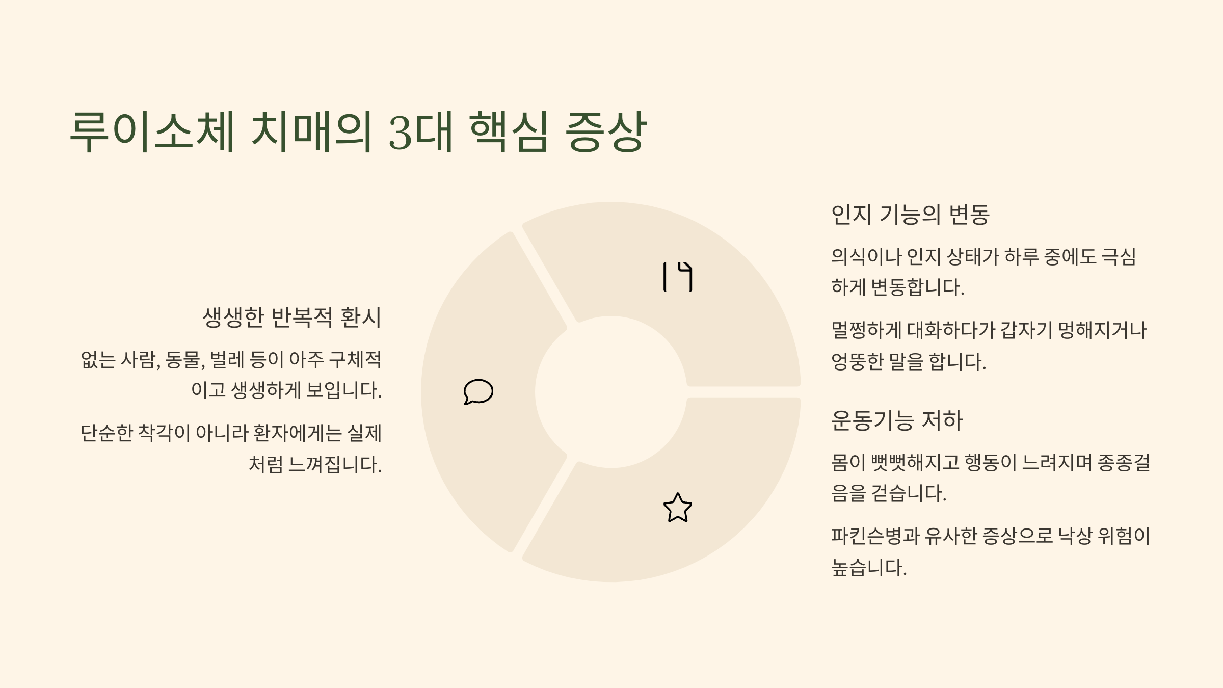 2. 루이소체 치매의 3대 핵심 증상 (이것만은 꼭 알아두세요!)