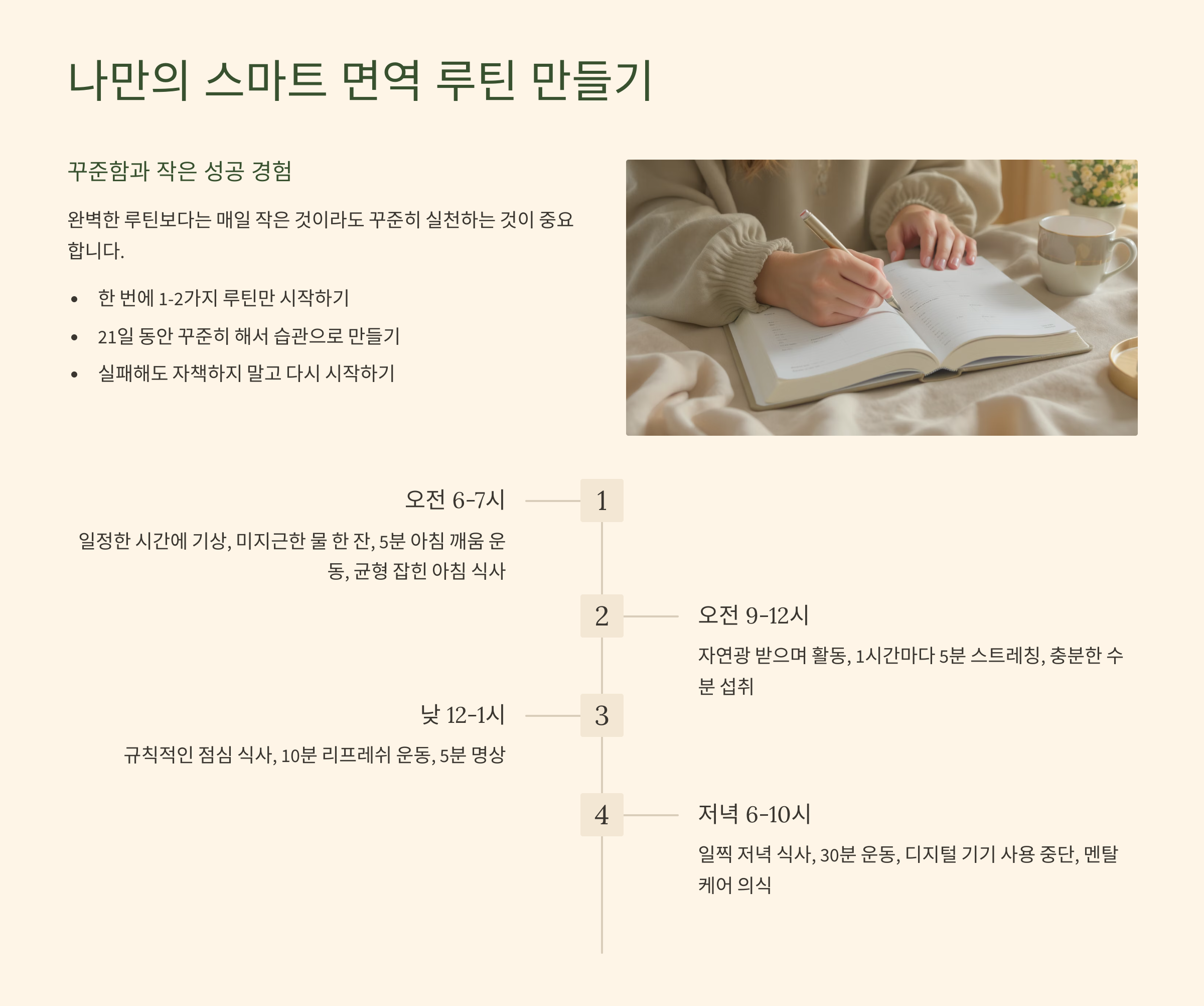 - 종합 실천 가이드: 나만의 '스마트 면역 루틴' 만들기 📈