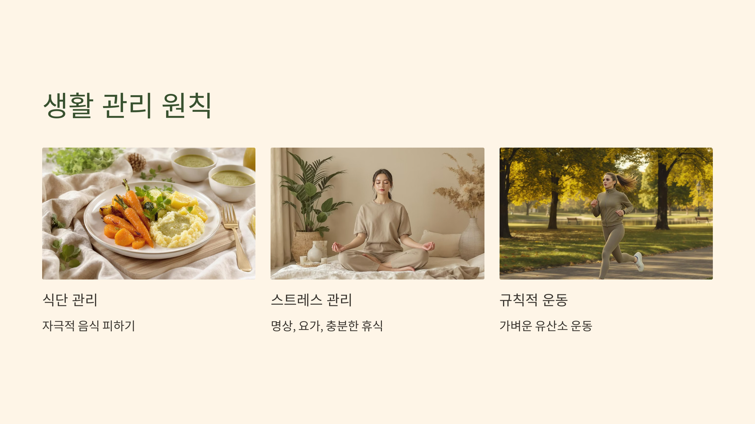 약물 치료와 함께 건강한 생활 습관을 병행하는 것이 증상 관리와 재발 방지에 매우 중요합니다.